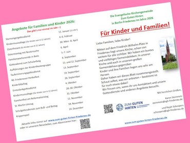 Kinder und Familien liegen uns im Guten Hirten ganz besonders am Herzen – Ihr seid uns wichtig! Deshalb haben wir auch im Jahr 2026 wieder ein buntes, vielfältiges Programm für euch zusammengestellt.