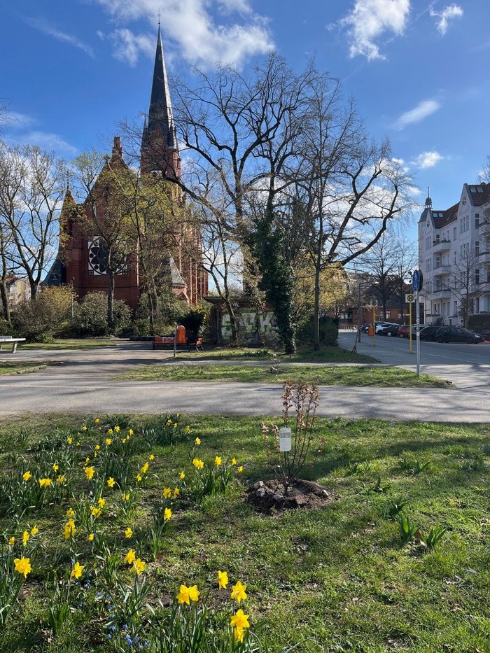... der Frühling mit einem gesäuberten Platz, rund um die Kirche von Süd bis Nord, Ost bis West.