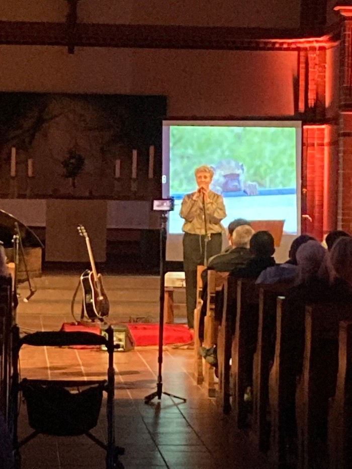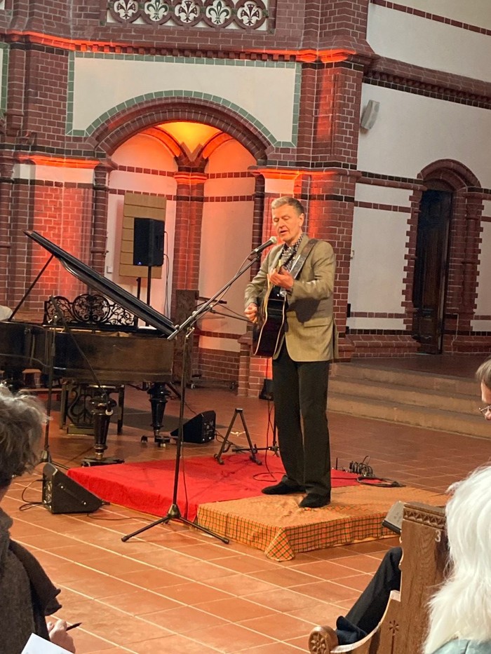 Den Anfang machte Lenard Streicher, der mit Songs „seines Freundes“ Dean Martin und seiner Gestik, die ersten Lacher hervorbrachte. Good old Elvis war zu hören und zum Schluss ein eigener Song, eine Western-Ballade. Das Publikum unterstütze ihn dabei mit Erzeugung von Soundtracks: Pferdegetrappel, das Wiehern von Pferden und das Knallen eines Revolvers. Eine Premiere in unserer Kirche!!