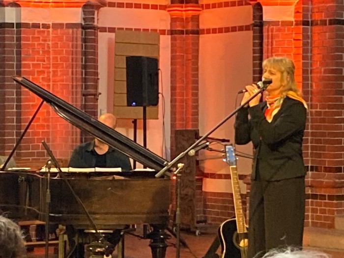 Zum Abschluss dann tat Dorothee Dalg auf mit Liedern aus Musicals, die nicht kaum bekannt geworden sind. Warum fragten sich viele, nachdem sie die Songs gehört hatten. Große Emotionen spiegelten sich in den Melodien wieder und Dorothee Dalg brachte sie mit einer mächtigen, glanzvollen Stimme zum Leben. Überhaupt, diese Stimme! So verwundert es nicht, dass der Vergleich mit Barbra Streisand aufkam. Zum Abschluss dann ein Lied „Grateful“, passend zum Veranstaltungsort und zum Abend, wie Dorothee Dalg erklärte.