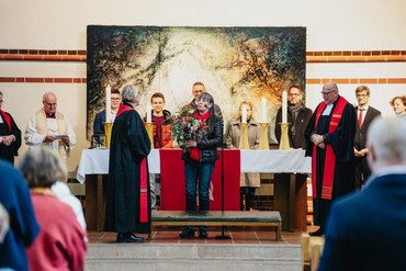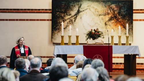 Im Festgottesdienst zum 132. Kirchweihjubiläum wurde Pfarrerin Dr. Rajah Scheepers feierlich in ihren Dienst eingeführt. Die Einführung nahm Superintendent Michael Raddatz vor, musikalisch begleitet wurden die ca. 350 Gottesdienstteilnehmer*innen von der Friedenauer Kantorei und dem Friedenauer Posaunenchor. Der Predigt über Sprüche 8,21-35 voran ging ein Anspiel zur Frage: "Was ist eigentlich Weisheit?" von Jugendlichen der Christlichen Jugend Friedenau. Der Gemeindekirchenrat der Philippus-Nathanael Gemeinde hatte beschlossen, diesen Gottesdienst im Pfarrsprengel Kirche in Friedenau mitzufeiern. Anschließend lud die Gemeinde zu einem Empfang in der Kirche.