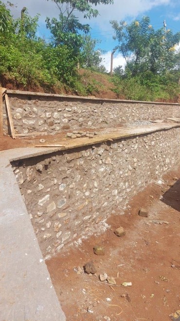After a meeting we visited the teachers house ground and saw the fencing and retaining wall, the job was well done, thank you for your support.