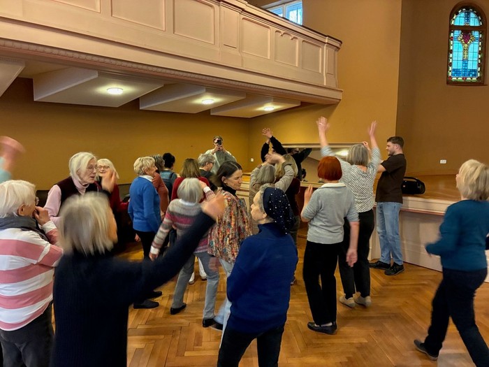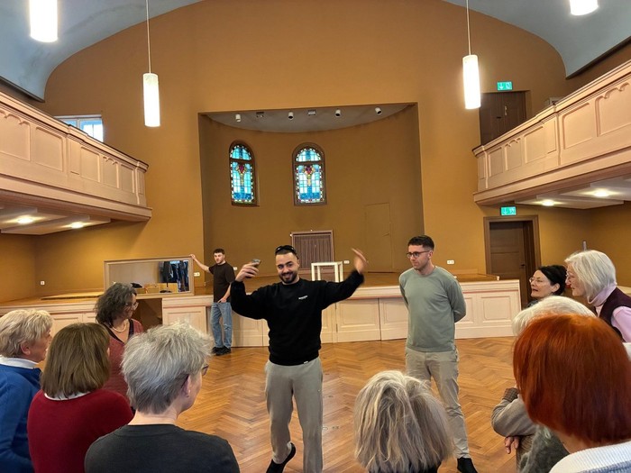 Am Freitag kamen zum Senioren-Tanz „Tanz mit – bleib fit“ im Großen Saal unseres Hauses drei junge Künstler der Filmuniversität Babelsberg Konrad Wolf, die einen Videoclip mit unserer Tanzgruppe drehten. Seniorinnen und Senioren tanzten dabei zu Techno-Beats – also mal etwas ganz anderes.