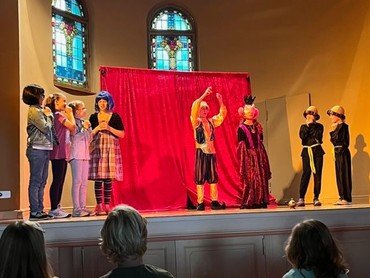 In unserem Kindertheaterkurs in unserer Kirchengemeinde kannst du dich in deine Lieblingsfiguren verwandeln und viel Neues über die Welt des Theaters und der Schauspielerei erfahren! Neben Theaterspielen, Spaß, Lachen, Tanzen und sich Bewegen lernst du auch die Grundlagen des