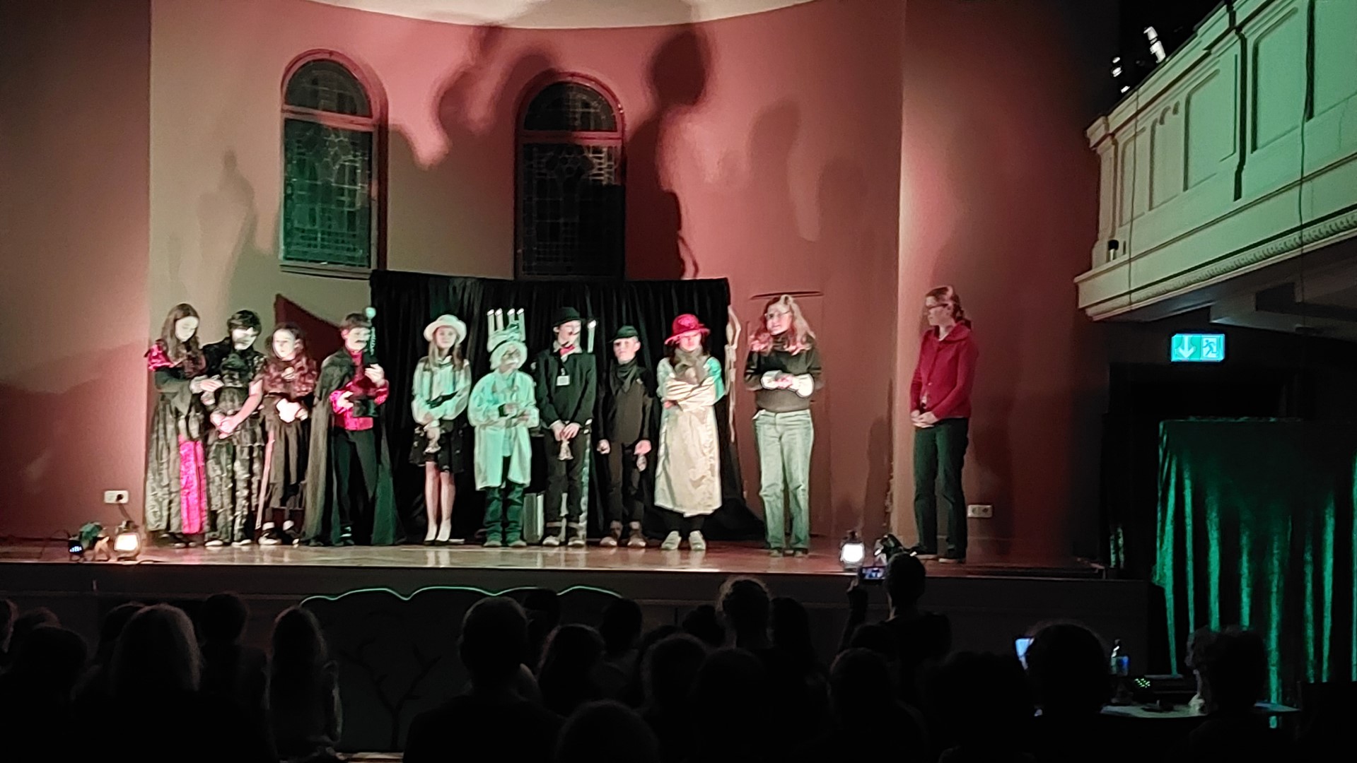 Alexandra: Hallo Peter, die TIKK-Theatergruppe probt gerade den lustigen Grusel-Krimi, Dosenfutter für Dracula. Die Theaterkinder wollten dieses mal super gerne etwas Gruseliges spielen.